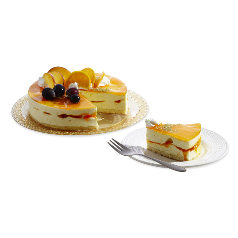 panna fresca pastorizzata, vino spumante, variegato (13%) (Sciroppo di saccarosio (saccarosio, acqua), sciroppo di glucosio, pesca semicandita 16% (pesca, sciroppo di glucosio-fruttosio, zucchero, acidificante: acido citrico), scorza d’arancia candita 12% (scorza di arancia, zucchero, sciroppo di glucosio), succo d’arancio siciliano concentrato (concentrato 5.9 volte e corrisponde al 36% di tal quale, sul totale) 6%, acidificanti e antiossidanti: acido citrico, acido ascorbico; aromi naturali, gelificante: pectina; colorante: beta-carotene; estratto vegetale: paprika.), gelatina alimentare, pan di spagna(Uova; Farina di frumento; Zucchero; Fecola di Patate; Destrosio; Stabilizzante: E420; Emulsionante E471; Agenti lievitanti: E450i, E500ii; Miele; Aromi.), Zucchero, Uova di gallina, tuorlo, pasta pesca (sciroppo di glucosio, pesche (36%), zucchero, acidificante: E330, gelificante: E440i, aromi, colorante: E101i.), Bagna analcolica (acqua,zucchero,aromi.), zucchero invertito